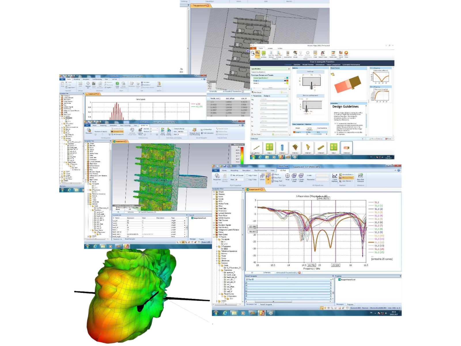 Antenna placement analysis (HFSS, CST, various electromagnetic simulation tools).